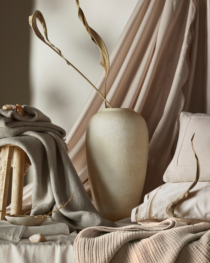 Warm and tranquil, for an inviting bedroom with the softest feminine touch.